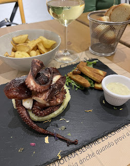 Con una buena comida de entrantes, pasta y pulpo y una buena gota de vino, nos dejamos mimar en este sitio realmente bueno. Un consejo para todos aquellos que vuelvan pronto a Italia: Comparte un entrante, todo lo demás es gula.